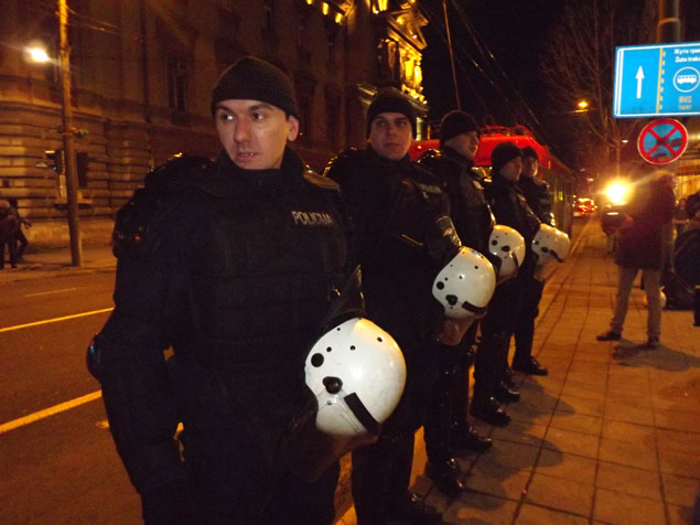 * Полиција је у Улици Краља Милана опколила групу од педесет грађана и покушала да им одузме државну заставу Србије. Једног од младића полицајац је ударио у главу, али заставу нису добили