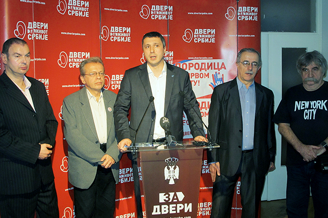 Отварајући конференцију за медије, члан Старешинства Покрета  Двери, Бошко Обрадовић, поручио је да излазак на изборе представља глас за излазак из Србије, за укидање државних институција Србије на КиМ, глас за тзв. независно Косово и подршку Влади Републике Србије да у издаји не буде сама. Сада је свакоме јасно зашто се догодила изборна крађа на Ђурђевдан 2012. и изборна превара у којој је СНС пре избора говорила једно, да би сада могла да ради супротно.