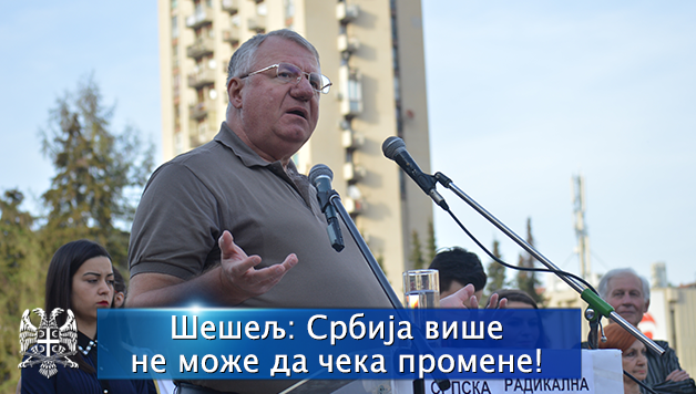 У ГОВОРУ одржаном пред око 3000 Ужичана, председник Српске радикалне странке проф. др Војислав Шешељ истакао је да Србија више не може да чека и да су Срби превише дуго веровали разним политичким преварантима и пљачкашима који су нас ојадили и завили у црно.