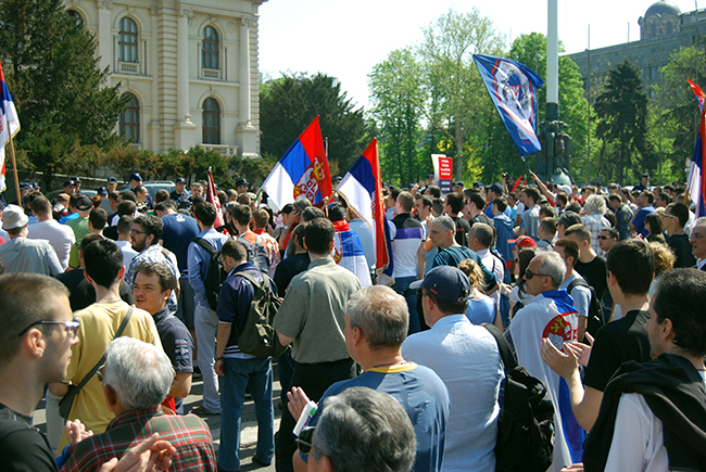 Говорници су били прекидани снажним гласом народа. Поклицима: „Идемо на Косово“, „Издајници“, „Усташе“, „Напоље изроди, то је наша имовина“, „Србија, Русија, не треба нам унија“...