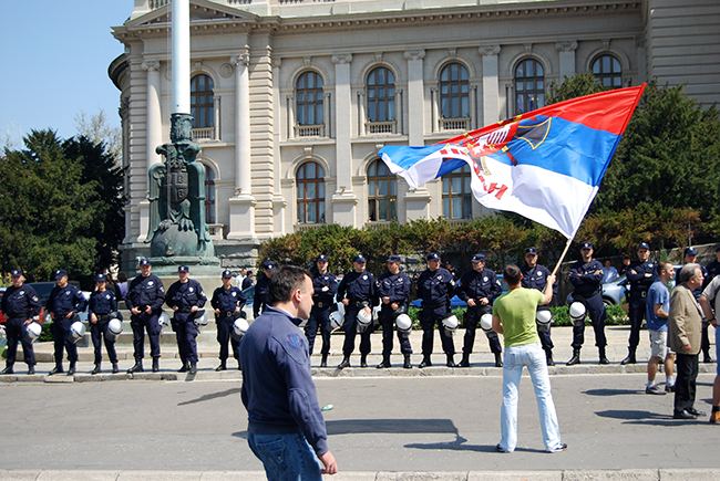 Радикали су покушали да се договоре са полицијом да их пропусти, а Наташа Јовановић је чак показала и посланичку легитимацију. Међутим, уместо да је пропусте, настало је гурање полиције и радикала, а потом, да не би било инцидената, заменик председника СРС Немња Шаровић позвао је окупљене у мирну шетњу до Храма Светог Саве. Тај позив је поновио и Бошко Обрадовић.
