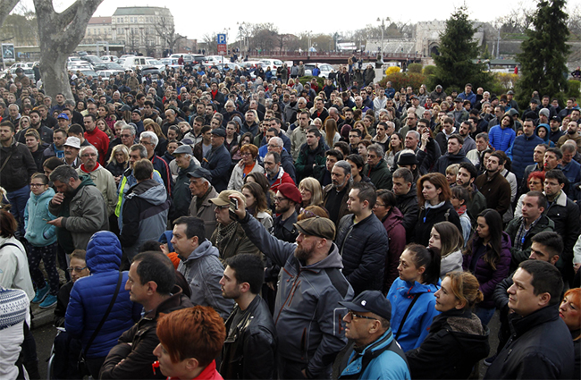 Грађани су на скупу испред Скупштине града подизањем летака симболично гласали против одлуке да аеродром буде „поклоњен држави“.