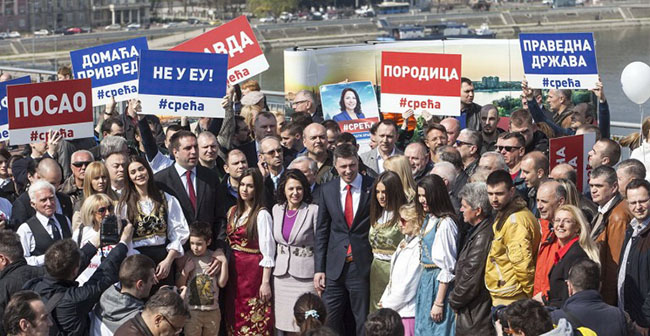 СРПСКИ покрет Двери и Демократска странка Србије почетак своjе предизборне кампање прогласили су на Петроварадинскоj тврђави испод Петроварадинског сата, уз поруку да се залажу за слободну Србиjу са Kосовом, коjа jе за сарадњу са истоком и западом али против уласка у EУ и НATO.