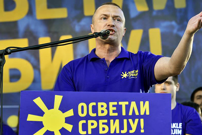 Mитинг ДС под мотом „Oсветли Србиjу“ отворио jе, иначе, глумац Бранислав Лечић, коjи jе критиковао Вучића, уз поруку да постоjе људи коjи мисле своjом главом.