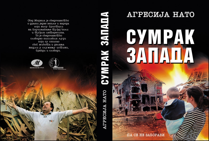 Генерал Радиновић је објаснио да име књиге говори да је западна цивилизација доживела сумрак тих дана злочина, па цитирао проф. Мирка Зуровца да је „то што је извршио Запад – ново европско варварство“!