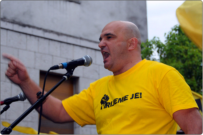 Пред око седам хиљада грађана, колико их је било према незваничним полицијским процјенама, Вучинић је узвикивао „живео отпор, живела побуна” и „доље режим, доље Влада”.