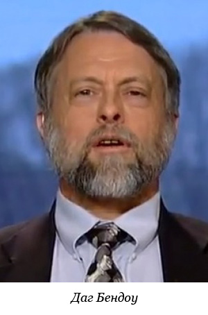 Даг Бендоу је истакнути сарадник Кејто института и стручњак за спољну политику и грађанске слободе, својевремено радио и као специјални саветник председника САД Роналда Регана, и био уредник политичког магазина „Инквајер”.