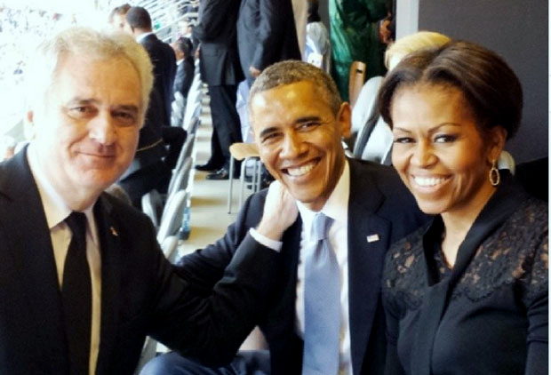 Барак и Мишел Обама насмешили се Николићу на комеморацији Мандели