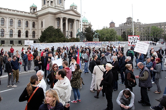 Протести у Београду и другим градовима Србије почели су 3. априла, дан после председничких избора.
