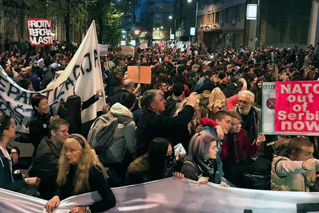 - Појавиле се и нове пароле и транспаренти: „NATO out of Serbia now”, „Образовање за све”, „Нисмо хулигани, ми смо ваша деца”, „Доводи милијардере Арапе, а ја немам ни за чарапе”, „Држава на води”, „Рекао вам Вучић да нас пустите уживо”, „Пинк ми је узео мајку”...