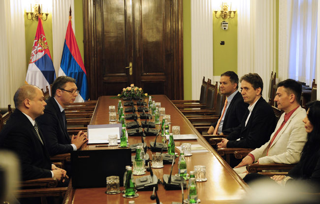 После разговора са лидером СРС-а, Вучић је почео консултације са делегацијом Покрета Доста је било коју предводи Саша Радуловић.