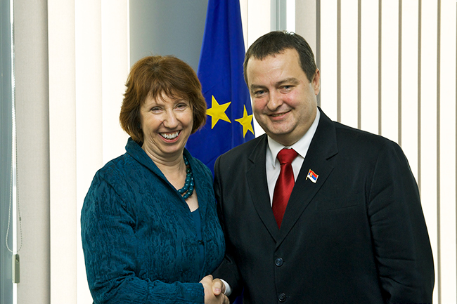 Предуслов за добијање датума је, како је истакао, напредак у дијалогу са Приштином и то је била главна тема разговора државног врха са високом представницом ЕУ Кетрин Ештон.