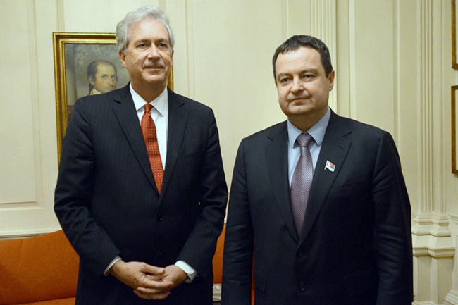 Дачић је разговорао са замеником америчког државног секретара Вилијамом Бернсом који му је, како каже, пренео да САД желе развој билатералних односа две земље, да Србију сматрају централном земљом у региону и да зато желе што боље политичке, економске и све друге облике сарадње.
