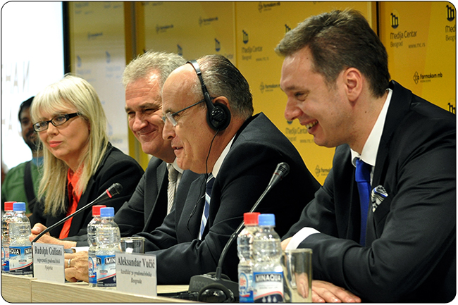 У МЕДИЈСКО-политичку „тучу“ - коју је испровоцирало довођење у Београд екс-градоначелника Њујорка Рудолфа Ђулијанија да подржи Александра Вучића - укључили су се и радикали.