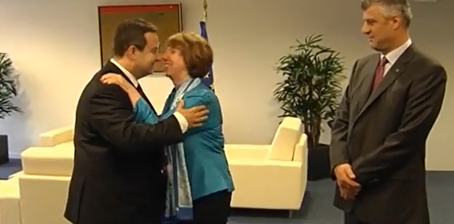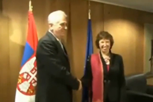 Њега, приликом прве посете Бриселу 2012, Ештонова није успела ни да препозна, па је трчала по ходницима седишта европске дипломатије у потрази за сликом, тада новоизабраног председника Србије. Када су се некако пронашли, све се завршило тек на куртоазном руковању.