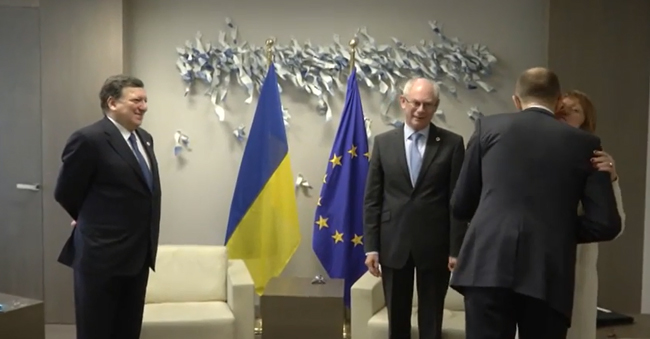 НОВИ премијер у Кијеву Арсениј Јацењук, чији легитимитет не признају ни Москва ни Симферопољ – боравио је јуче у својој првој званичној посети Бриселу.