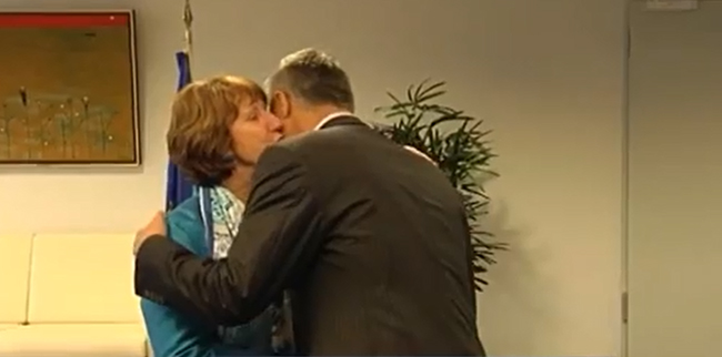 На снимцима из Брисела, јасно се види како леди Ештон грли Јацењука и љуби га у образ – три пута, по православном обичају.