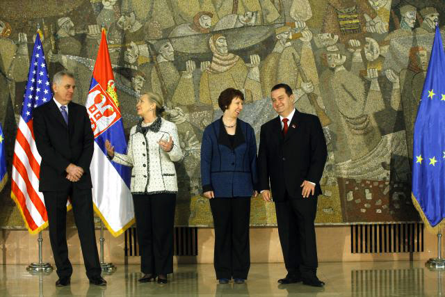 Клинтонова и Ештон дошле да „охрабре“ Николића, Дачића и Вучића