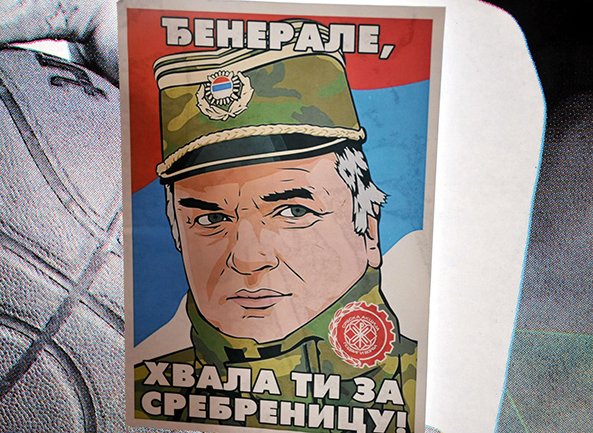 Плакати с ликом Младића, на којима пише „Ђенерале, хвала ти за Сребреницу!“, излепљени су у Кнез Михаиловој улици, на појединим аутобуским стајалиштима и у подземним пролазима.