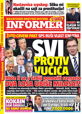 У ТАБЛОИДУ „Информер“ појавио се текст „Сви против Вучића“ у којем се аутори, потписани као „екипа Информера“, позивају на изјаве неименованог „бившег министра, функционера ДСС“, а у којима се наводно тврди да је „ДСС спремна да уђе у коалцију са ДС и ЛДП“.