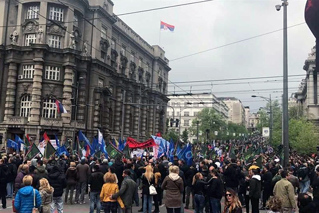 - Стигли и представници Удружења Синдиката пензионисаних војних лица Србије који носе пароле „Власт гази Устав“, „Брже, јаче, боље профитираш“