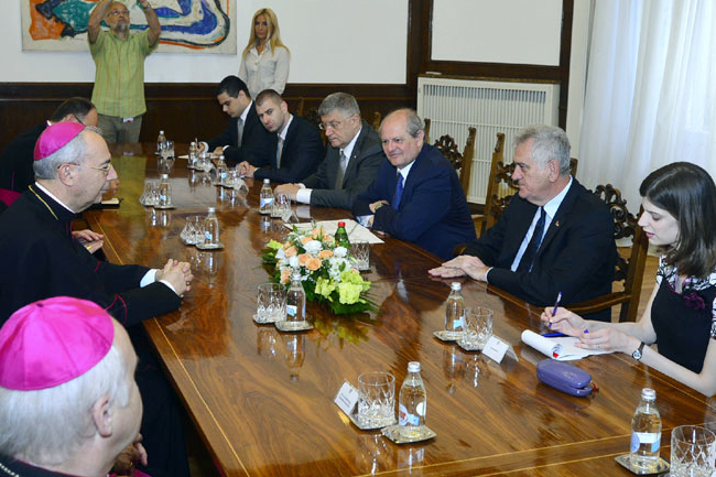Мамберти борави у посети Србији, а данас се састао и са председником Николићем који је истакао да ће му бити драго да пожели добродошлицу поглавару Римокатоличке цркве, чим око те посете буде постигнут договор са СПЦ-ом.