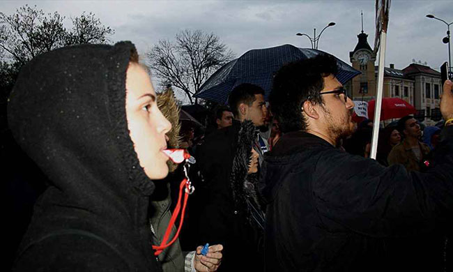 Као и претходних дана и вечери, учесници протеста, углавном студенти, дували су у пиштаљке, ударали у импровизоване бубњеве и скандирали „Није наш председник!”, „Ав, ав, ав!”, „Изађите напоље!”, „Не дамо Ниш!”, “Онесвести се!”.
