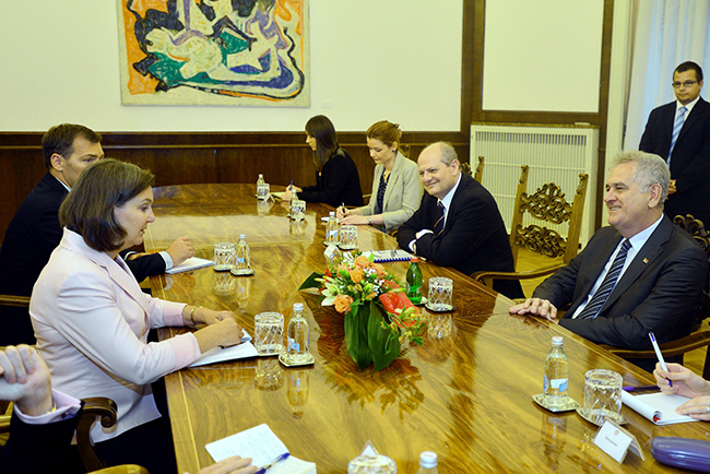 Председник Србије Томислав Николић пренео је Викторији Нуланд и да Србија неће одустати од напора да стабилизује ситуацију у региону, „упркос томе што очигледно нису баш сви у окружењу спремни да поделе тежину тог посла“ са њом.