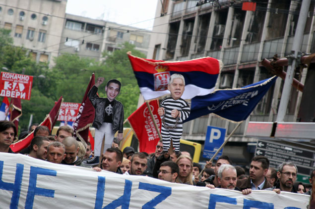 * Учесници протеста прошли поред институција које су највише допринеле изборној крађи на управо завршеним изборима - градског одбора ДС, просторија Републичке изборне комисије и РТС, узвикујући „Спаси Србију и губи се, Борисе“, „Бандо црвена“, „Борисе, лопове“, док су на челу колоне носили транспарент на коме је писало: „Гласове из гроба није имао ни Слоба“