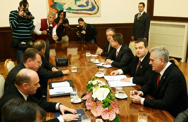 Николић је на састанку поручио да Србија никада неће признати једнострано проглашену независност Косова, а Дачић је обавестио представнике Срба са севера о процесу имплементације до сада постигнутих споразума са Приштином, пре свега о заједничкој управи административним прелазима и о споразуму о слободи кретања.