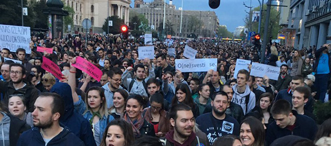 - ОКО 5.000 студената, младих људи и грађана учествовало је у у Новом Саду трећем „Протесту против диктатуре”, а колона је прошетала од Трга Републике, преко универзитетског кампуса, до центра града, где се протест завршио без инцидената.
