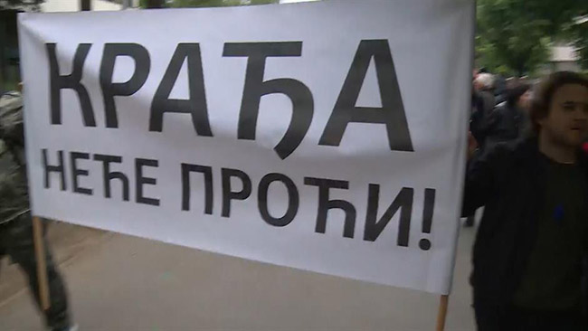 Окупљени су затим кренули у протестну шетњу ка делу града где се налазе Влада Србије и Републичка изборна комисија, а успут су се задржали испред седишта општинског одбора Српске напредне странке у Његошевој улици.