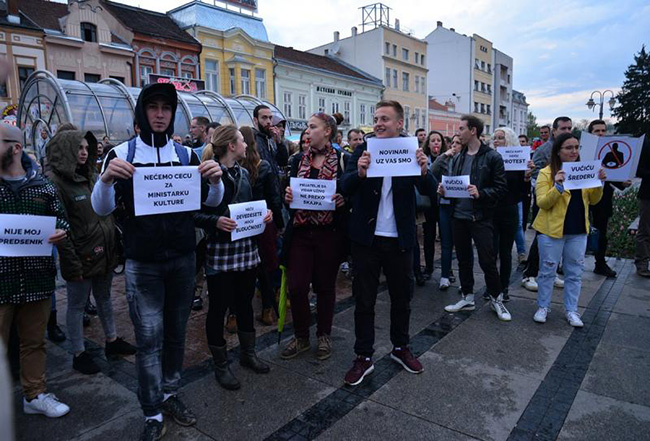 Током протестне шетње демонстранти су скандирали „Није наш председник”, „Ав, ав, ав”, „Ево нас опет” и носили транспаренте на којима је писало „Да АВ чује наш став”, „Нисам happy”, „Културу а не диктатуру”.