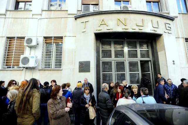Јучерашње окупљање новинарских удружења испред зграде Танјуга