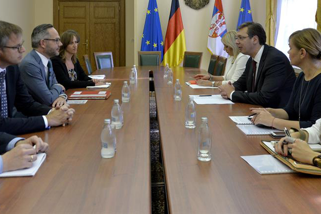 ПРЕДСЕДНИК Владе Србије Александар Вучић и државни министар за Европу у Министарству иностраних послова Немачке Михаел Рот сагласили су се данас да односе две земље „одликује добра и интензивна сарадња у свим областима“ и да постоје велике могућности за даљи развој економске сарадње, саопштено је из Владе Србије.