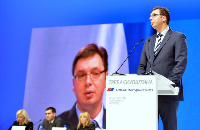 На почетку обраћања на изборној скупштини странке лидер СНС је подсетио да је са ЕУ трасиран пут у будућност, али и да сада морају да се обаве неопходне економске и друштвене реформе, а Србија да се постави на здраве ноге.