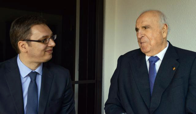 ПРВИ потпредседник Владе Александар Вучић састао се у Немачкој са бившим канцеларом Хелмутом Колом са којим је разговарао о путу Србије ка Европској унији и њеном економском опоравку, а Кол је истакао да нарочито цени улогу коју Србија има у политичкој стабилности региона.