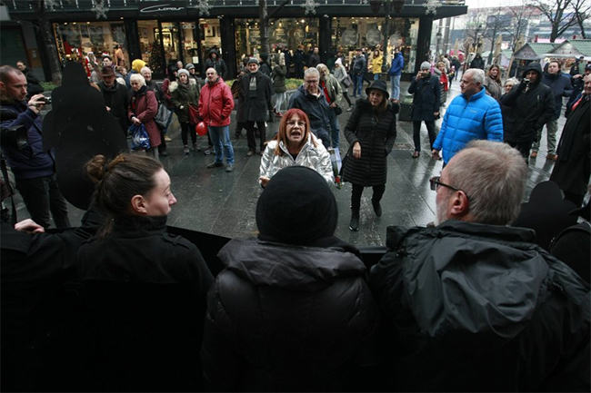 Убрзо су се вратили и у Кнез Михаиловој, насупрот Жена у црном одиграли израелски плес после кога су наставили шетњу.