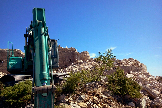 Како је објавио портал buka.com, након напуштених старих кућа и штала које су срушене у селима Гребци, Драчево и у Поповом пољу, Кустурица је срушио и аустро-угарско утврђење Петриња. Багер је уништио подзиду и предњу страну тврђаве, а двадесетак грађана блокирало је аутомобилима камион и пут, како би спречили да се камен превезе до Вишеграда.