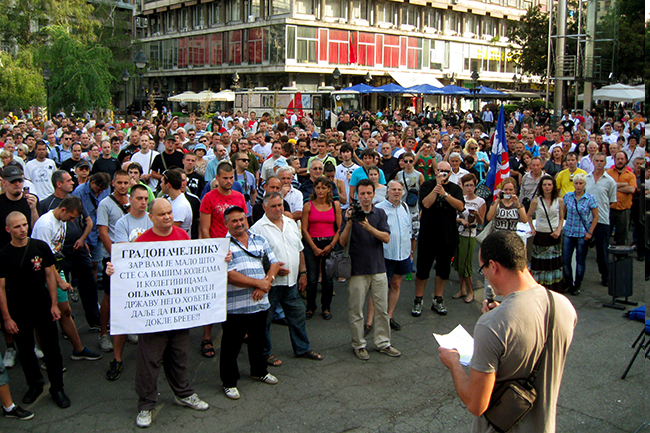 Димитријевић Далибор, који је отпуштен из ГСП јер није желео да потпише споразум о преласку у „Апекс“, упознао је окупљене са тортуром и прогоном који су прошли запослени у ГСП који су се побунили против пљачке овог јавног предузећа.