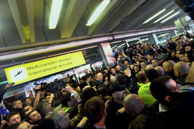 На перону за међународне доласке била jе огромна гужва, а лидера радикала су осим породице дочекали и страначки функционери Немања Шаровић, Зоран Kрасић, Наташа Jовановић, Вјерица Радета...