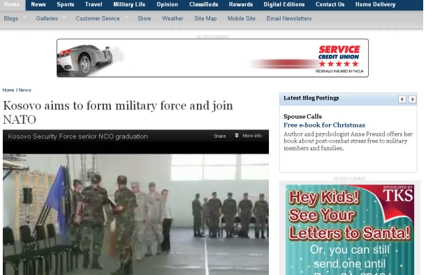 Ово, иначе официјално гласило америчке војске, процењује да би војска Косова, мада малобројна, била још један корак ка осамостаљењу Приштине.
