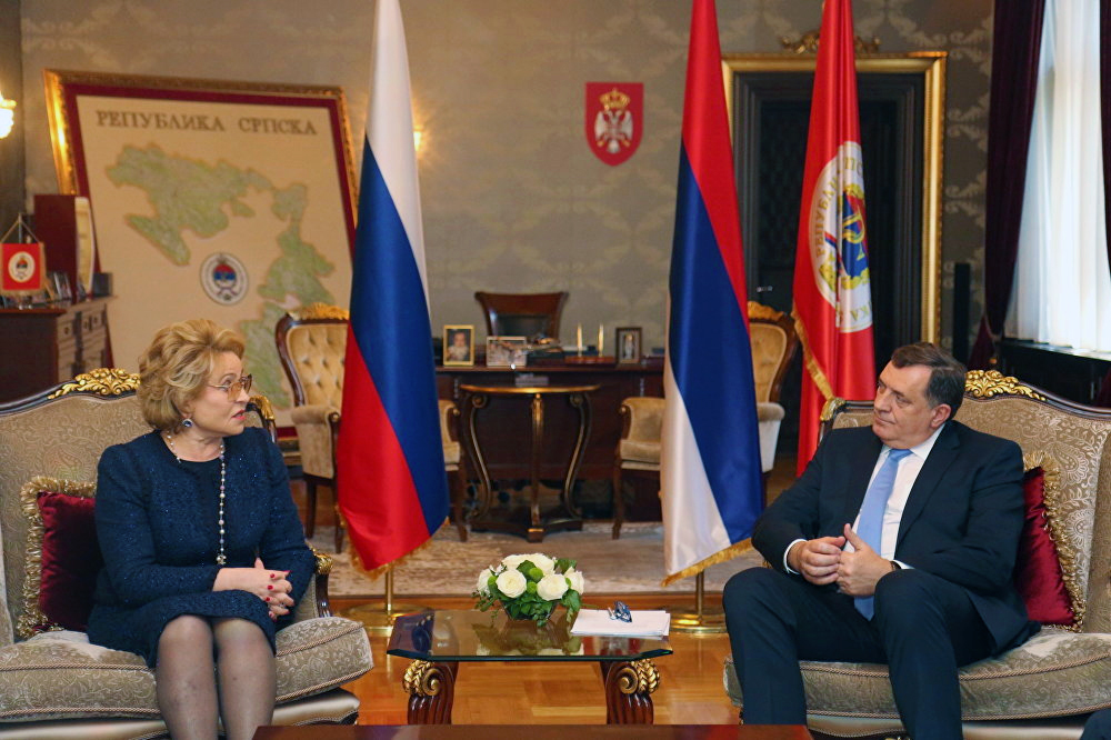 Матвијенко је рекла да је Додик у Русији чест гост, да ужива велику популарност и има контакте са председником Русије Владимиром Путином, премијером Дмитријем Медведевом и другим важним политичарима и бизнисменима, што је резултирало бројним реализованим пројектима у нафтном и електроенергетском сектору.