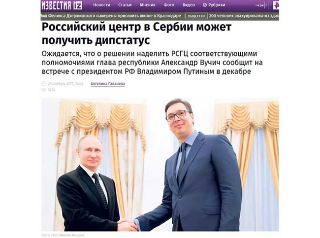 О статусу Руско-српског хуманитарног центра, који је одавно трн у оку САД, разговарало се и током посете Србији председнице Савета Федерације Федералне скупштине Руске Федерације Валентине Матвијенко.