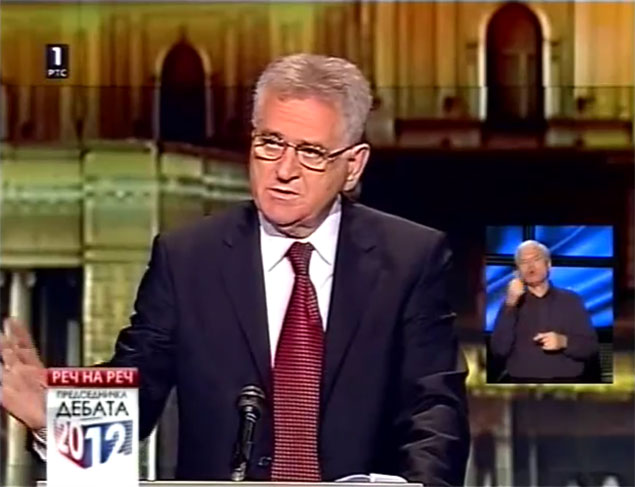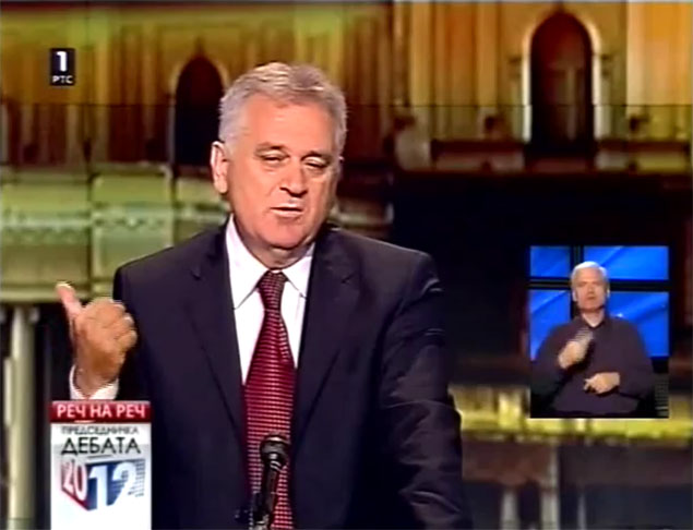 Србија је данас кључни фактор мира и стабилности. Уколико би се политика у Србији мењала сваки час, то би било веома опасно. Ви сте, господине Николићу, некада заступали политику која нас је удаљавала од ЕУ, водила према изолацији, пре неколико дана сте заступали политику која нас води према ЕУ, данас сте поново склопили савез са господином Коштуницом о заједничкој сарадњи и усаглашености  деловања у парламенту, а добро је познато да је он против вполитике учлањења Србије у ЕУ. Таква политика је, по мом мишљењу, веома опасна! Србија мора да зна којим путем иде и о томе се одлучује на овим изборима.