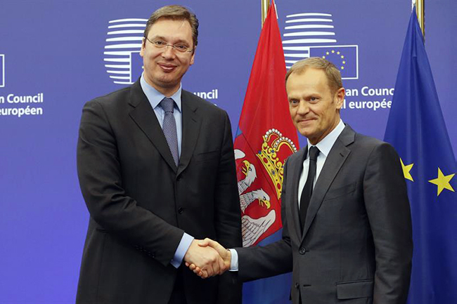 Туск затражио од Вућића да Србија постепено усклађује спољну политику са политиком ЕУ