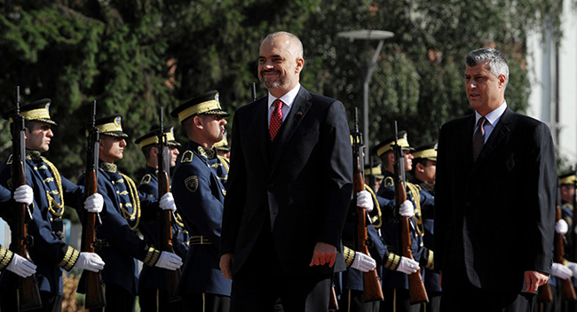 ПРЕДСЕДНИК „Косова“ Хашим Тачи, разговарао је данас уочи самита Брдо-Бриони у Тирани са албанским премијером Еди Рамом о, како је навео, националном уједињењу Албанаца и потпуном отварању границе између Албаније и Косова, те припајању три општине југа централне Србије косовској територији.