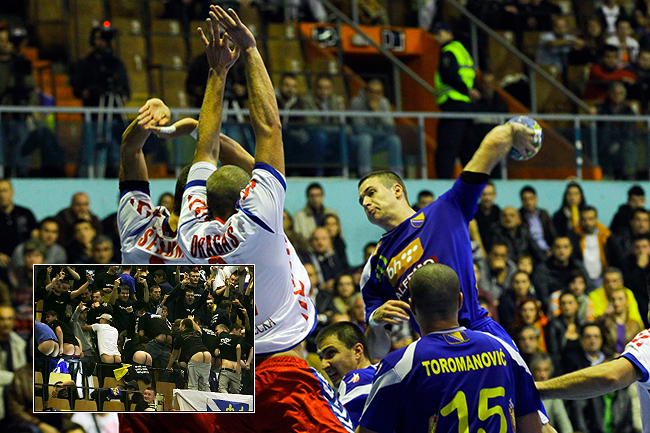 ПРЕ почетка утакмице рукометних репрезентација Босне и Херцеговине и Србије група навијача БиХ вулгарним гестом пропратила је интонирање српске химне у дворани Скендерија.