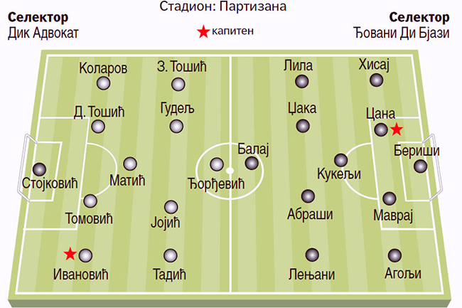 Дик Адвокат, селектор Србије најавио је једну до две измене у односу на тим који је играо против Јерменије, а највероватније ће их бити у одбрани и везном реду.
