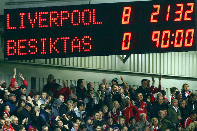 А најубедљивију је остварио Ливерпул против Бешикташа - 8:0. Било је то 6. новембра 2007. године на Енфилд роуду.